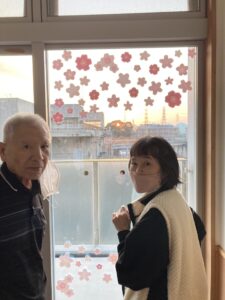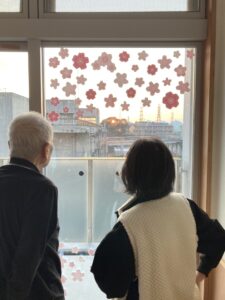 🌸朝日と桜の景色を一緒に観ているM様・T様🌸