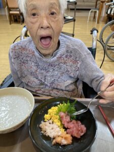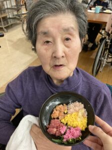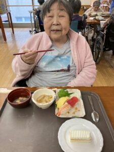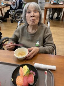 2026.02.26 にぎり寿司🍣🌸 4階です。 昨日の昼食に、にぎり寿司が出てきて皆さんテンション上がっていました🍓 1人1人に合った食事形態で提供され皆さんペロリと召し上がられました😊🍣 投稿者:森