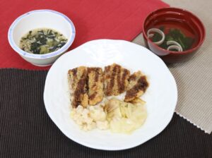 ごはん アジフライ 青菜の煮浸し すまし汁