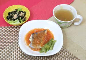 ごはん ホキのチリソースがけ 海藻サラダ 中華スープ