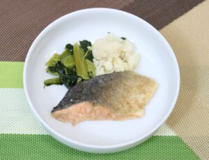材料(1人分) マス1切 食塩0.3g こしょう適量 薄力粉5g