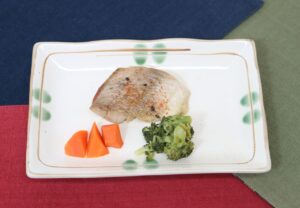 材料(1人分) メバル1切 食塩0.2g 油2g 七味唐辛子適量