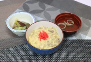 他人丼 根菜の煮物 すまし汁