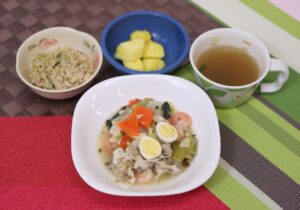 ごはん 八宝菜 切り干し大根のナムル 中華スープ パイナップル