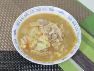 材料(1人分) ラーメン130g 豚肉40g キャベツ35g にんじん10g