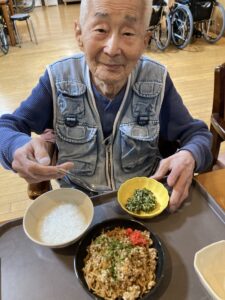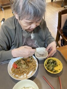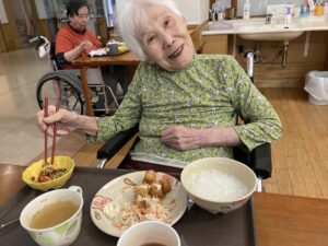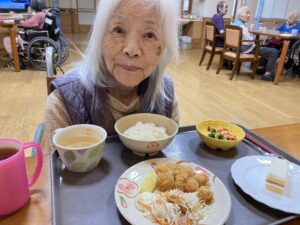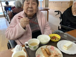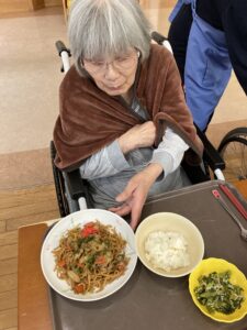 2026.04.24 大好物の焼きそばとエビフライ🍤 4階です。 先日の22日にはエビフライ🍤24日には焼きそば🍜と皆さんが好きなご飯が出てきて幸せそうでした💖😊 特別献立の日はいつもより笑顔で召し上がられています🍑💕 投稿者:森