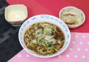 ⑥器にラーメンを入れ、③をのせ、④のスープを注ぎます。