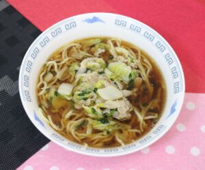 材料(1人分) ラーメン130g 豚肉40g 白菜50g にら5g
