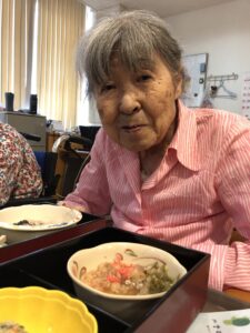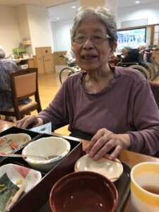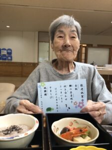 2025.09.20 敬老祝賀会💐 4階です。 9月15日は敬老の日💐 4階では、米寿が2名。101歳の方が1名いらっしゃいました👏 I様 H様 普段と違うお昼ご飯に、みなさま「おいしい」「豪勢やな」と嬉しそうに話されていました🥰 投稿者:武島