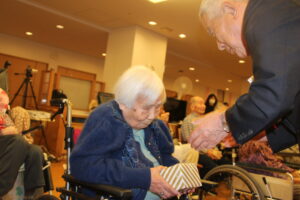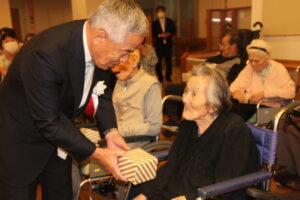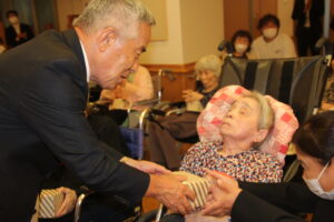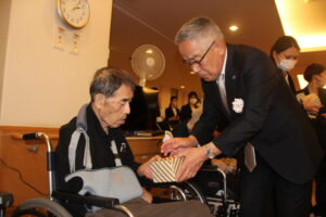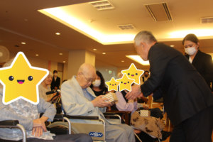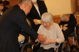 2025.09.15 敬老祝賀会 3階です。 3階フロアでは喜寿3名、米寿5名、白寿2名、103歳の入居者様1名にご参加いただき、お祝いさせていただきました。 また、対象ご利用者様へのお祝いに加えて、和太鼓の演奏や笠踊り等で楽しんでいただきました。 これからもお元気でお過ごしください。 投稿者:松本