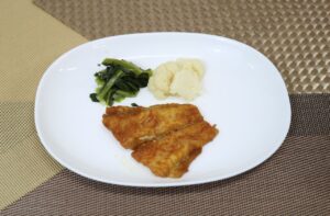 材料(1人分)バサ1切 食塩0.1g カレー粉1g 砂糖3g ウスターソース3g サラダ油5g