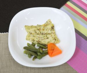 材料(1人分)バサ1切 食塩0.1g こしょう適量 オイルソース(バジル)4g