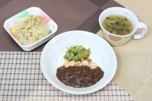 ごはん 蒸し鶏の麻婆あんかけ 春雨サラダ 中華スープ