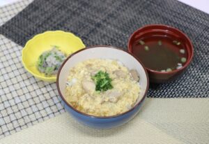 親子丼 大根のゆかり和え すまし汁