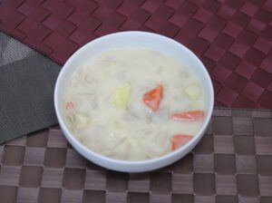 サラダ油1g コンソメ1g 牛乳80g 塩こしょう少々 小麦粉適量