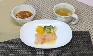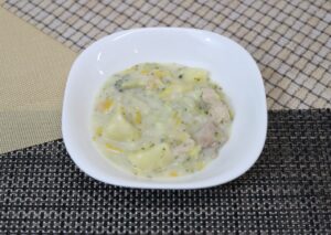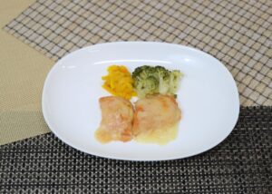 材料(1人分) 鶏肉80g じゃがいも30g ブロッコリー20g パプリカ(黄色)15g