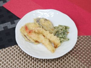 材料(1人分)エビ2尾 さつまいも25g なす25g いんげん15g