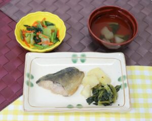 ごはん 鯵の味噌漬け焼き 小松菜の柚子胡椒和え すまし汁