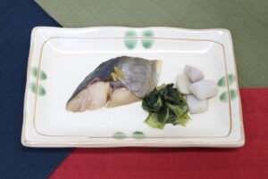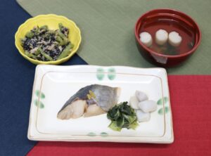 2025.12.21 鯵の幽庵焼き 【本日昼食の献立】 ごはん 鯵の幽庵焼き いんげんとひじきのごま和え すまし汁 【鯵の幽庵焼き レシピ】 材料(1人分) 鯵1切 こいくち醤油4g みりん4g 柚子0.5g 油2g 作り方 ①こいくち醤油、みりん、柚子を合わせ、鯵を漬けておきます。 ②フライパンに油をひき、鯵を焼きます。 ③器に盛り付けます。