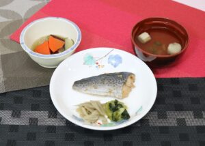 ごはん 鰆の梅照り焼き さつまいもの切り昆布煮 すまし汁