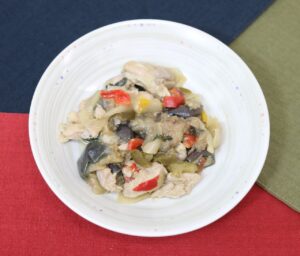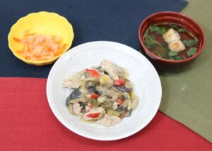 材料(1人分) 鶏もも肉80g たまねぎ30g なす30g