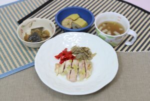 ごはん 鶏肉の葱塩焼き 中華炒め 中華スープ バナナ