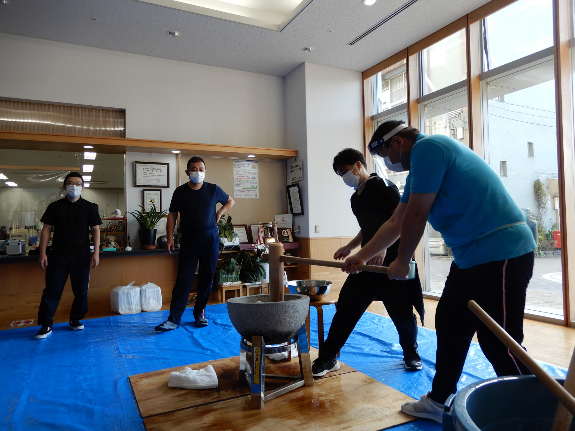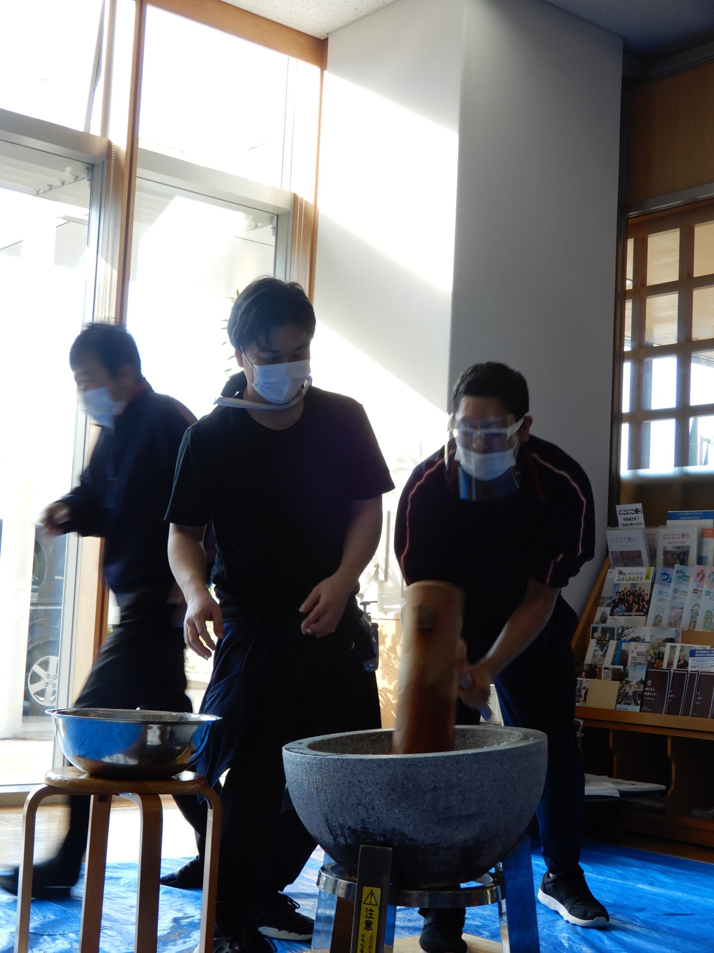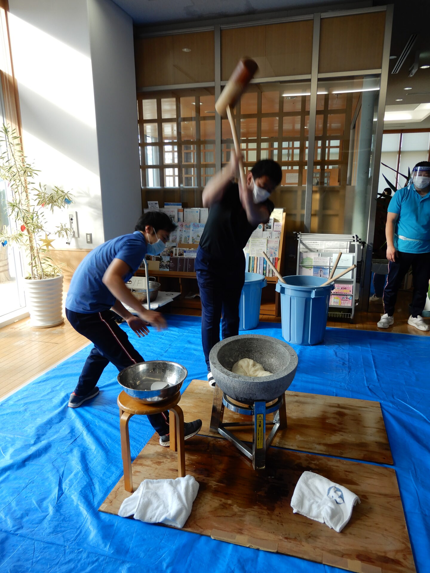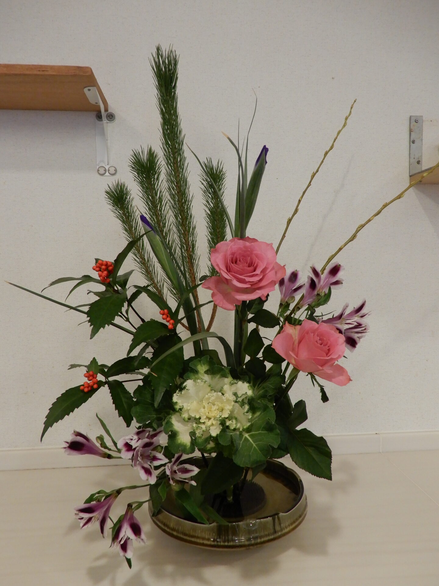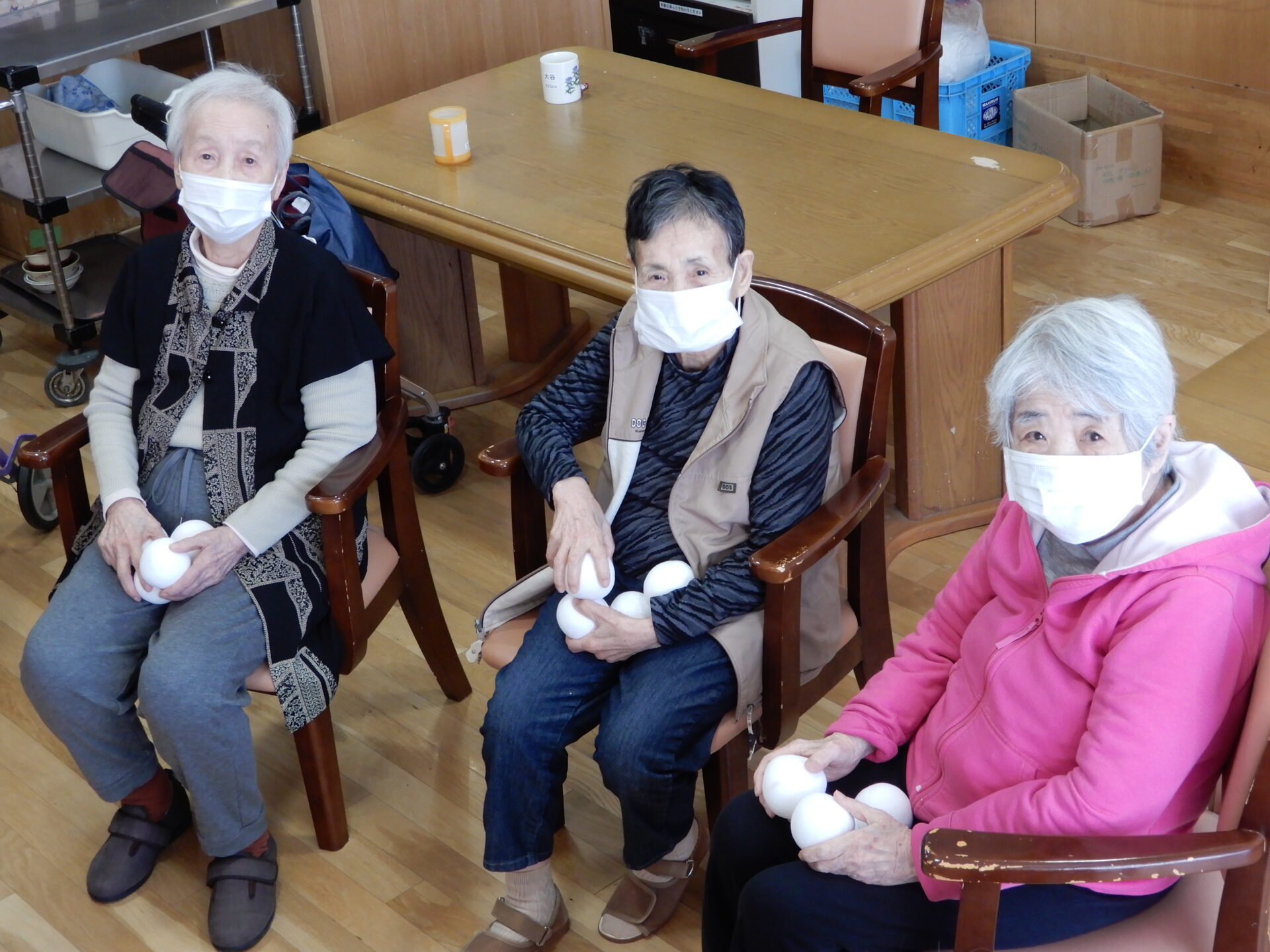 今月は、多くのレクリエーションがあり、生け花や魚釣り、玉入れや餅つきに、