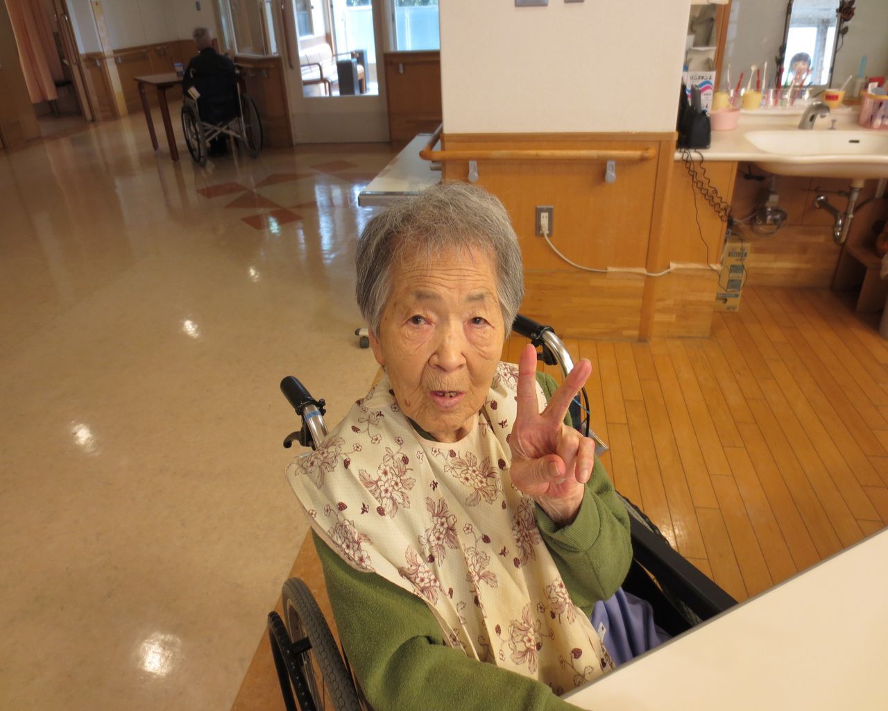 カメラを向けるとピースしてくれました