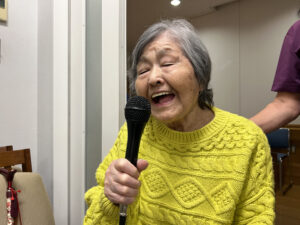 ご機嫌な様子でカラオケを楽しまれているK様。