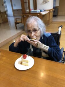 2026.01.26 MerryChristmas🎅 4階です。 少し遅くなりましたが、12月21日に開催されましたクリスマス会の様子をお届けします🎅💝 一人一人サンタさんからプレゼントを貰い喜ばれていました🎄 ケーキを久しぶりに食べて凄く嬉しそうでした🎄🍰 投稿者:森